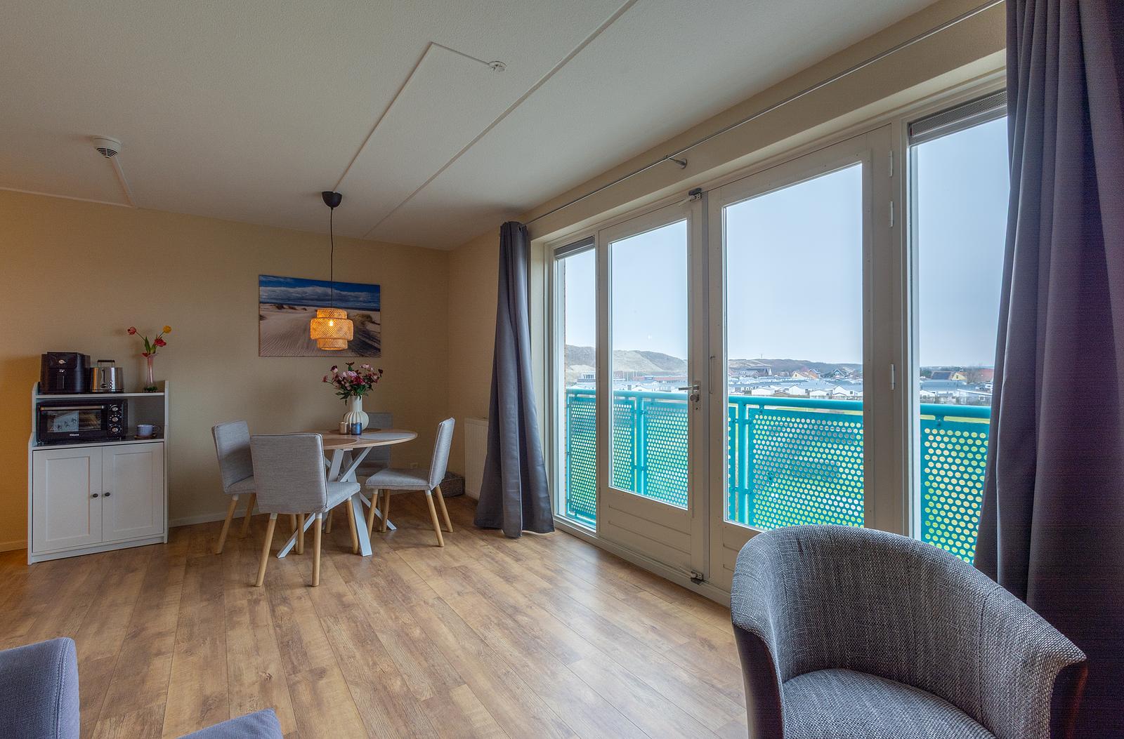 Prachtig modern ingericht appartement, direct aan de voet van de duinen gelegen.
